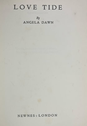 Although the author is given as Angela Dawn this appears to be a pseudonym. Additionally, the Newnes Catalogue for 1938/39 credits both Love Tide and Sea Fever to Angela Dawn which as Sea Fever was published in 1936 by Florence A. Kilpatrick it is probable that Love Tide’s authorship is confirmed.